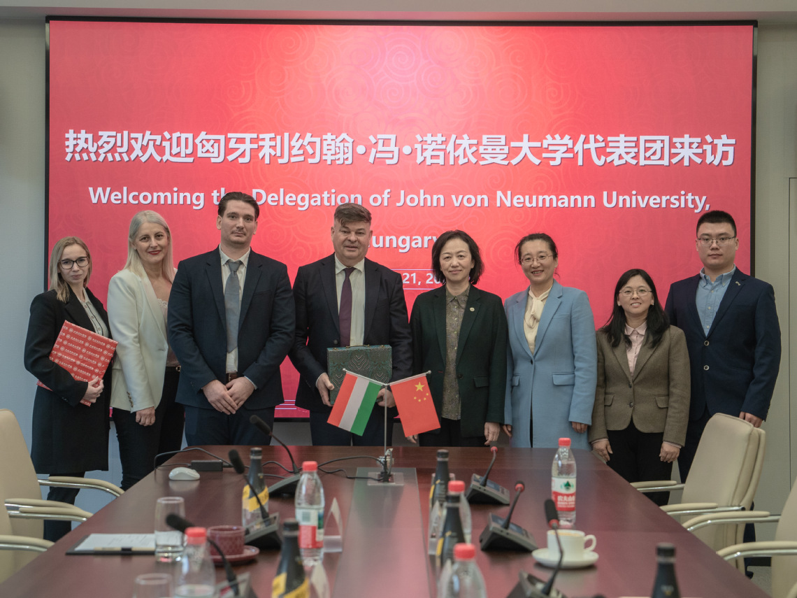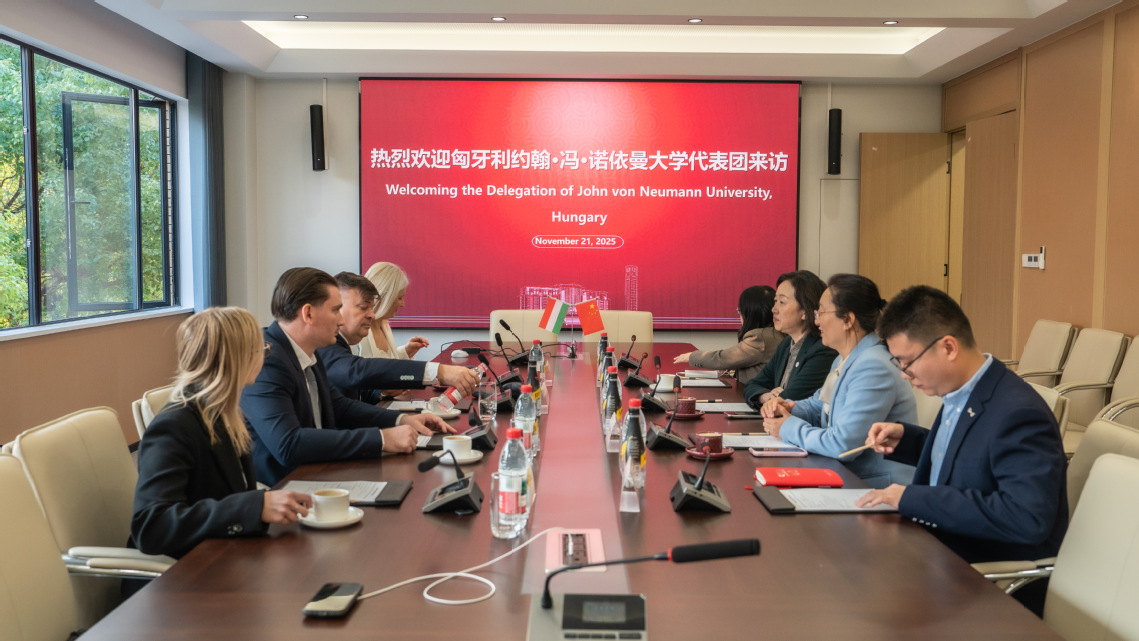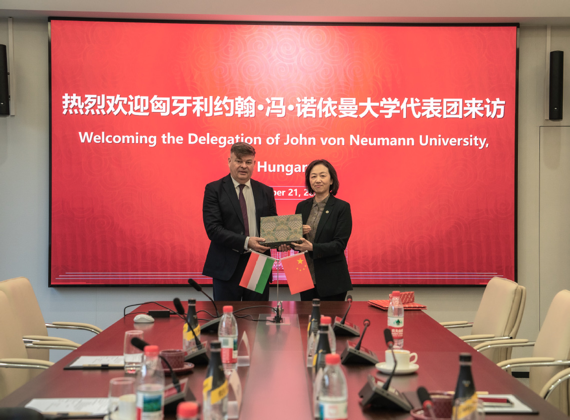 11月21日,匈牙利约翰·冯·诺伊曼大学校长Nagy Zoltan、Attila Kiss等一行4人访问上海电机学院,开展友好交流。我校院长龚思怡亲切会见代表团,国际合作与交流处相关负责人陪同参与活动。