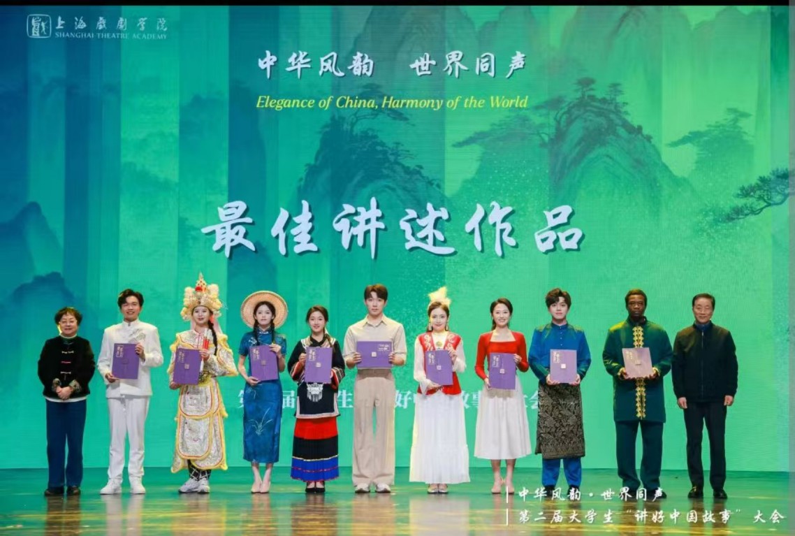 本次“讲好中国故事”大会由上海戏剧学院主办,主题为“中华风韵·世界同声”。本次盛会复选汇集了全国62所院校的121件优质作品,经专家评委严苛评审,最终50件作品脱颖而出,入围全国决选,其中普通话版块25件、方言版块15件、国际版块10件。我校留学生亦明的作品名为《故土之问 中国之答》,讲述了一位非洲青年如何致力于将中国先进农业技术带回家乡、助力故土发展的真实历程,作品以真挚的情感、独特的国际视角和深刻的文化共鸣,成功入选国际版块,并荣膺“最佳讲述作品奖”。