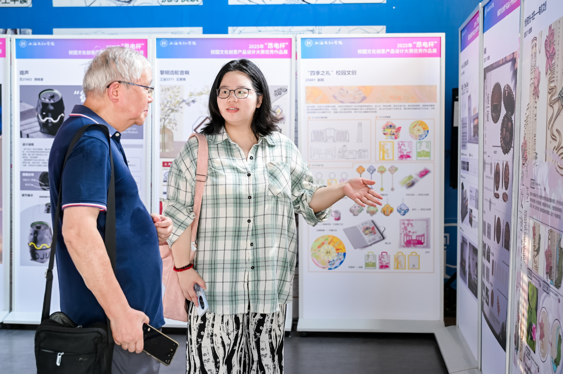 自大赛启动以来,学校通过多种渠道广泛发动校内师生和校友参与,共收集来自设计与艺术学院、商学院、电子信息学院的设计作品107幅,其中的优秀作品于10月6日学校72周年校庆系列活动中开展特别联展。参赛同学们积极主动在校庆活动日现场开展设计创意交流,让校园文化在互动中焕发生机,也为后续创作营造了更浓厚的文化氛围。