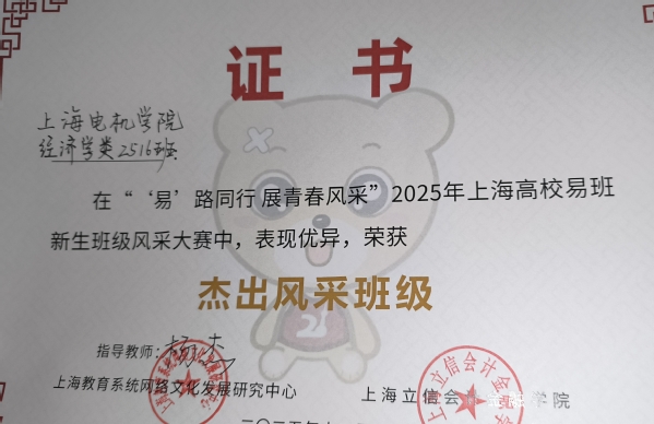 冬日暖阳,青春飞扬。12月6日,由市教卫工作党委、市教委指导,上海市教育系统网络文化发展研究中心与易班网联合主办的“‘易’路同行,展青春风采”2025年上海高校易班新生班级风采大赛决赛,在上海立信会计金融学院昭信堂举行。我校经济学类2516班凭借出色表现,荣获“杰出风采班级”称号,学校获评“最佳组织奖”。