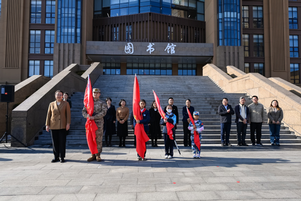随后,学校党委学工部(党委武装部)部长张珂,郑重向现场的四支国旗护卫队代表授予护卫队旗帜。