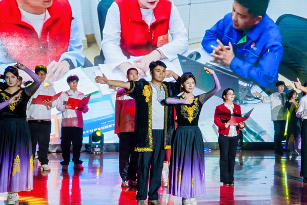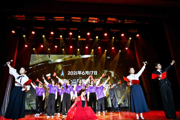 师生们以饱满的热情、真挚的情感,以《械心承铁骨·红魂炼匠心》《青春铸国魂》《青春赋·天宫颂》《破晓·声浪·逐光》《以青春之我,铸红色之魂》《青春逐梦如愿山河》等原创诗文朗诵,回望“一二・九”运动的峥嵘岁月,歌颂党的百年奋斗历程,抒发新时代青年在党建引领下投身产教融合、服务国家战略的壮志豪情。朗诵者们或激昂高亢、或深情婉转,将红色基因与工匠精神、青春担当融为一体,展现了电机学子“听党话、跟党走”的坚定信念与“强国有我、使命在肩”的时代风采,让现场成为一堂生动的爱国主义“大思政课”。