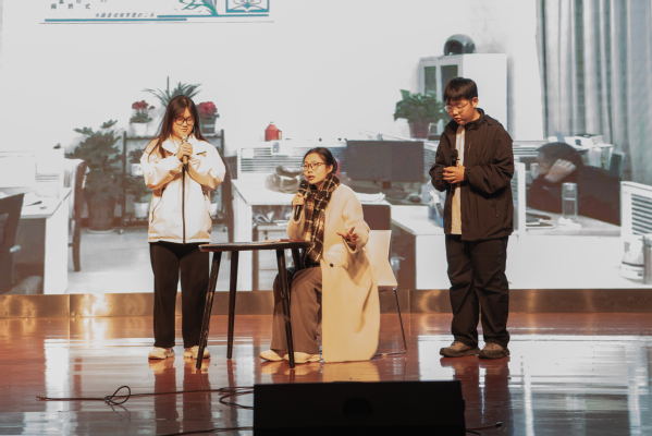 活动在温馨动人的开场短片中拉开帷幕。话剧《辅导员二三事》以真实幽默的笔触描绘校园生活,传递温暖关怀;朗诵《青春护航,安全同行》用铿锵之声唤起对安全的共同重视;话剧《“免费”的诱惑》通过贴近生活的剧情,深刻揭示日常安全隐患;影子戏《志愿精神,代代相传》以新颖艺术形式,展现奉献精神的传承力量;全体平安志愿者合唱《平安之歌》,用歌声表达对校园平安的珍视与守护,将整场活动气氛推向高潮。
