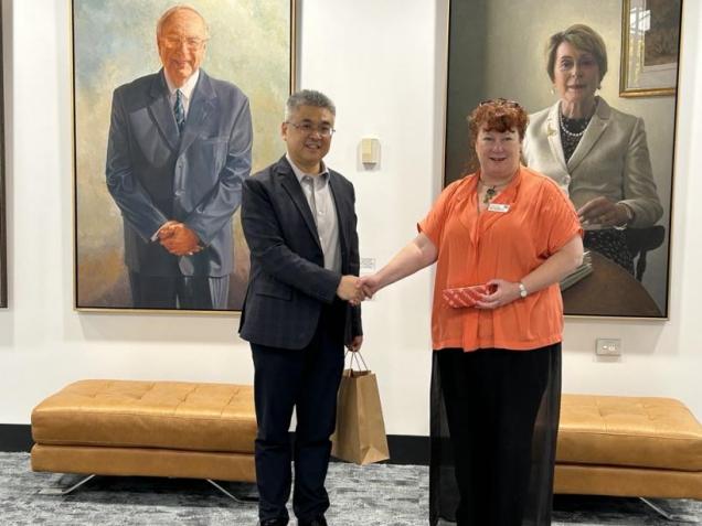 代表团还会见了商学院副院长 Suku Sukunesan 教授等,洽谈了AI赋能教学、跨学科科研合作、商科专业硕士双学位项目的可行性,以及教师交流与培训等合作。鉴于我校获批留学基金委的创新型人才培养项目,我校提出希望选派硕士生前往埃迪斯科文大学攻读博士学位,并邀请该校教授来我校授课或讲座。