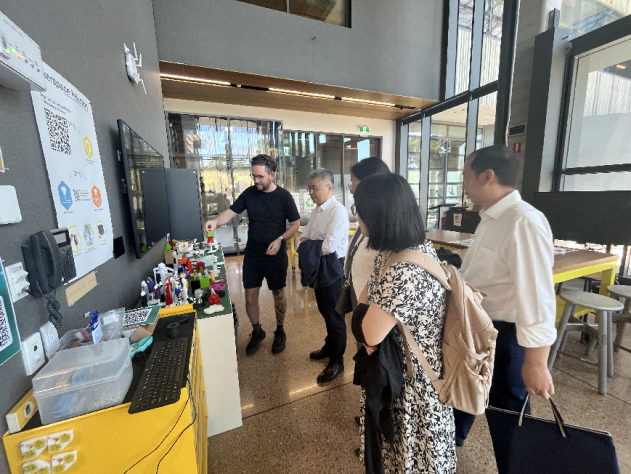 12月12日,代表团访问澳大利亚科廷大学。科廷大学(全球)常务副校长Xiaotian Zhang教授、科学与工程学院副教务长 Chris Rawson教授、全球合作伙伴关系主任Mr. Nigel de Silva、科学与工程学院国际事务院长Sambit Datta教授以及国际处全球合作伙伴顾问Saba Amanuel女士等热情接待了代表团。常务副校长Xiaotian Zhang介绍了科廷大学的校区分布、功能定位、校园规划、留学生服务设施及国际化氛围营造等方面内容,并与我校代表团交流了相关经验。我校代表团分享了学校的最新情况和临港新片区的支持政策。科廷大学科学与工程学院负责人与我校代表团成员交流了各自学院的专业设置、课程体系及科研方向,并就工程类硕博联合培养、留基委项目合作申报、教师访学交流展开了热烈的交流讨论。随后,代表团参观了科廷的教学区、设计与建筑环境学院、健康研究与数据分析中心、信息学习空间、专题教室等。