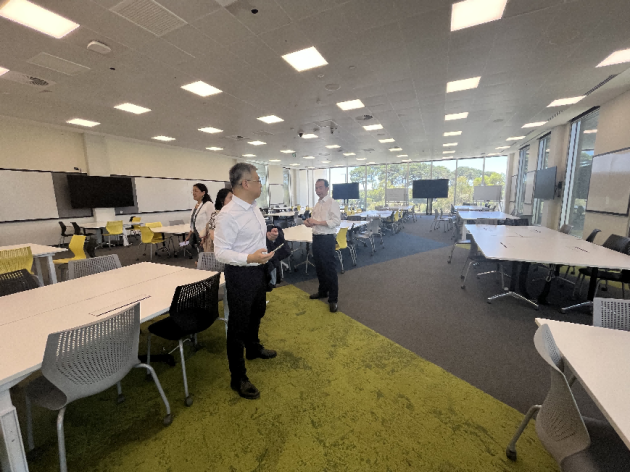 12月11日,代表团访问澳大利亚伊迪斯科文大学。国际化负责人Helen Bonavita教授,全球商务发展与治理主任 Dr.Marjia Petrovska, 国际合作与交流处项目主管Fengmei Guo女士以及国际部团队等代表学校迎接了代表团。Helen Bonavita教授介绍了伊迪斯科文大学的最新变化、优越的办学条件以及将在2026年2月投入使用的市中心新校区。双方探讨了校区建设、工程类教师培训、本科和硕士学分互认项目、2+2双学位和本硕连读的合作可能性,以及学生的暑期短期项目。