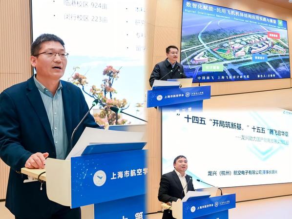 学术交流环节精彩纷呈。中国商飞上海飞机设计研究院结构副总师方俊伟博士作了题为《数智化赋能-民用客机机体结构应用实践与展望》的报告,系统分享了中国商飞在机体结构设计数字化、智能化转型中的探索与实践。我校航空学院院长李雷教授以《上海电机学院发展情况》为题,详细介绍了我校的办学定位、产教融合特色以及航空学院在学科建设、人才培养、科研平台等方面的发展规划。龙兴飞腾(上海)航空电子有限公司董事长胡兴作了题为《“十四五”开局筑新基,“十五五”腾飞启华章——龙兴助力国产航电发展实践报告》的分享,展现了民营企业投身国家大飞机事业的决心与成果。