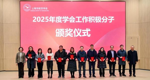 上海市航空学会副理事长兼秘书长金鸿明作《上海市航空学会2025年工作报告》,全面总结了过去一年的工作成果,并展望了2026年的重点工作计划。副秘书长王大炜通报了学会第八届理事会相关会议审议通过的事项。副秘书长谢云宣读了《关于授予2025年度学会工作积极分子称号的决定》,龚思怡等与学会领导共同为获奖代表颁奖。