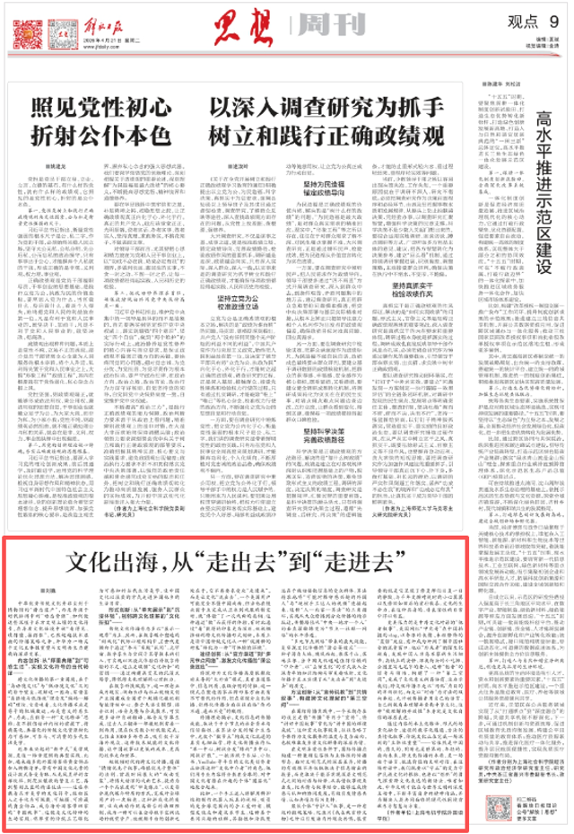 4月21日,我校外国语学院刘巍老师在《解放日报》发表文章《文化出海,从“走出去”到“走进去”》。文章指出,通过内容的本土化转译、形式的场景化融合、途径的数字化连通、方法的共情化叙事,传统文化正在完成一场深刻的“主体性重塑”。未来既要以“守正”的定力守护民族文化的根脉,也要以“创新”的勇气探索跨文化表达的新语法。